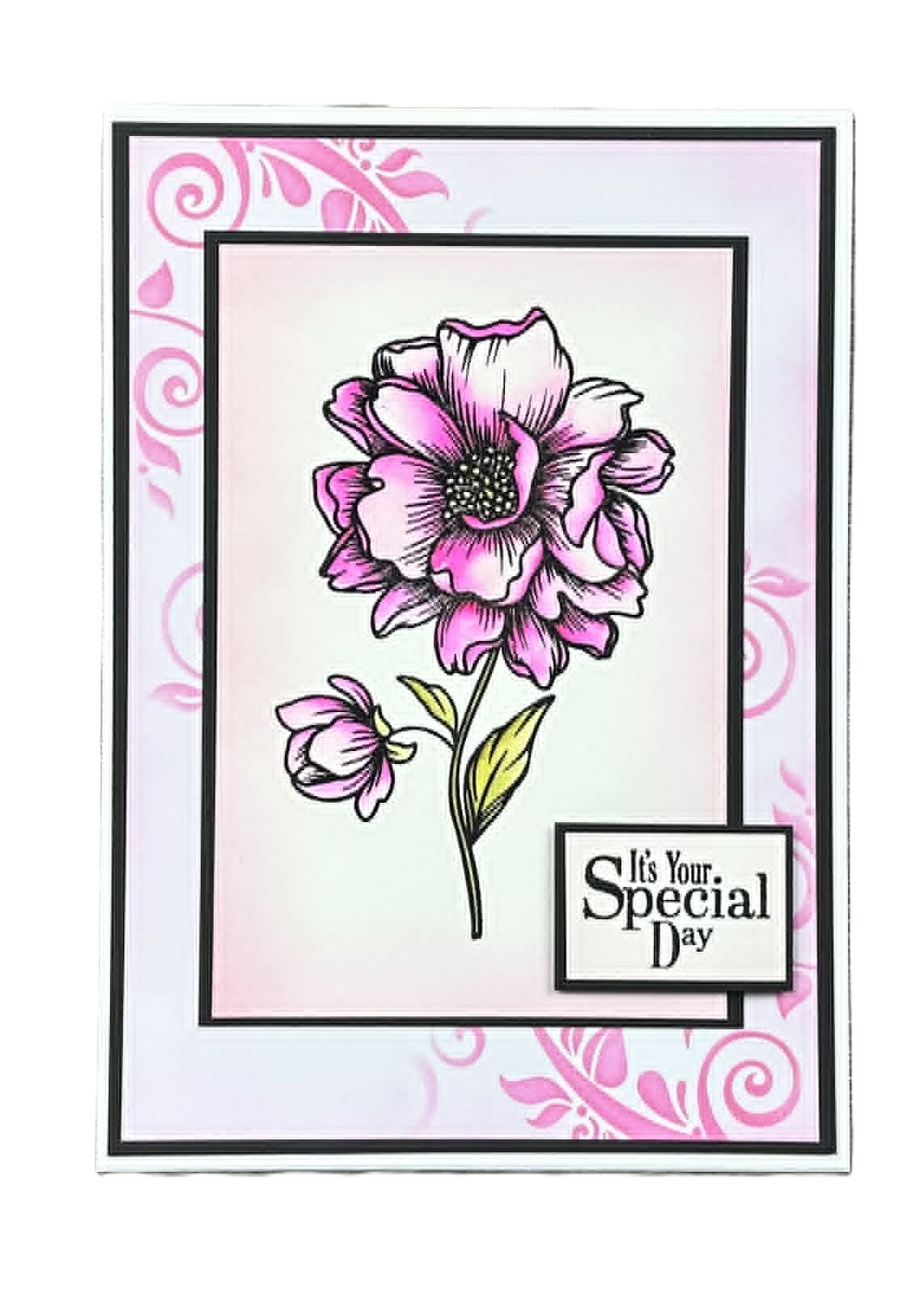 Single peony a6 stamp